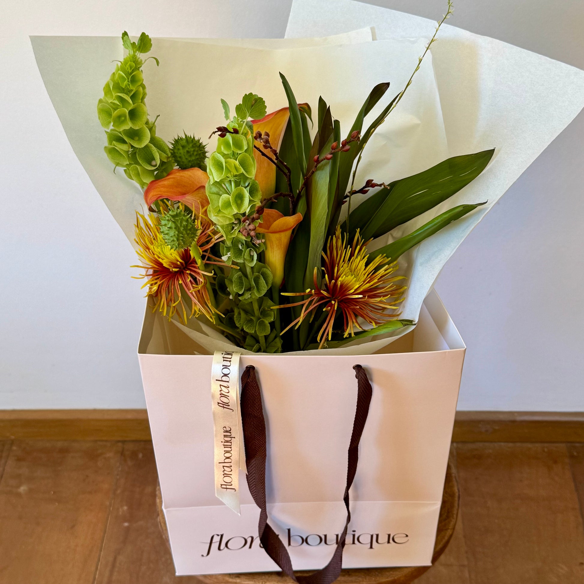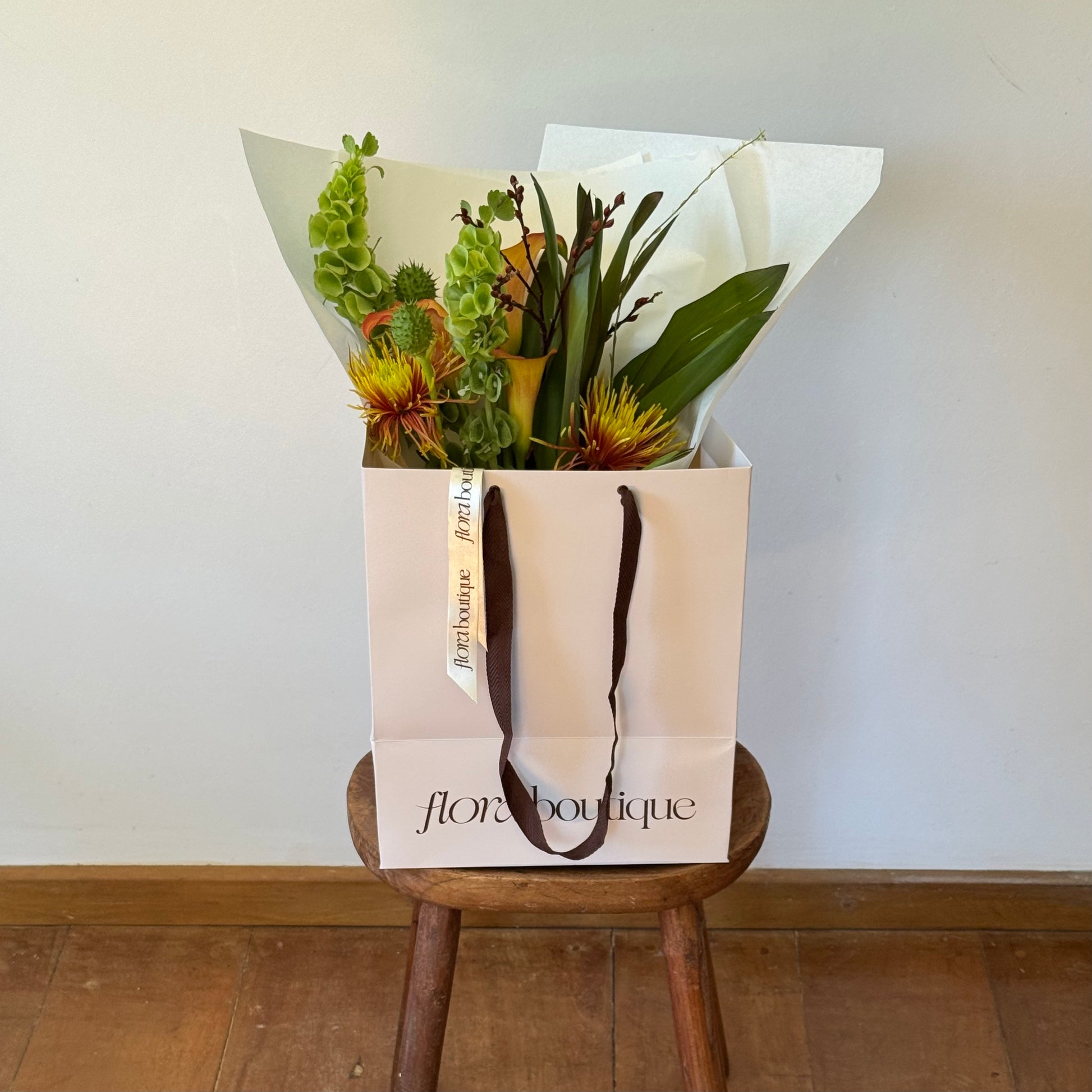 Cada buquê é montado manualmente com flores frescas selecionadas no dia da montagem. Por trabalharmos com flores naturais e sazonais, pequenas variações podem ocorrer, sempre preservando o estilo e a paleta de cores da composição.